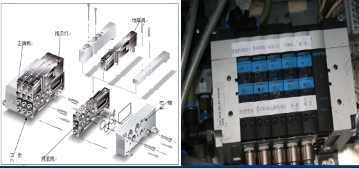 氣路板附帶密封件與功能閥片連接,通過快插接頭將壓縮空氣導(dǎo)出,氣路板有安裝螺孔,可以通過長螺栓固定閥島。