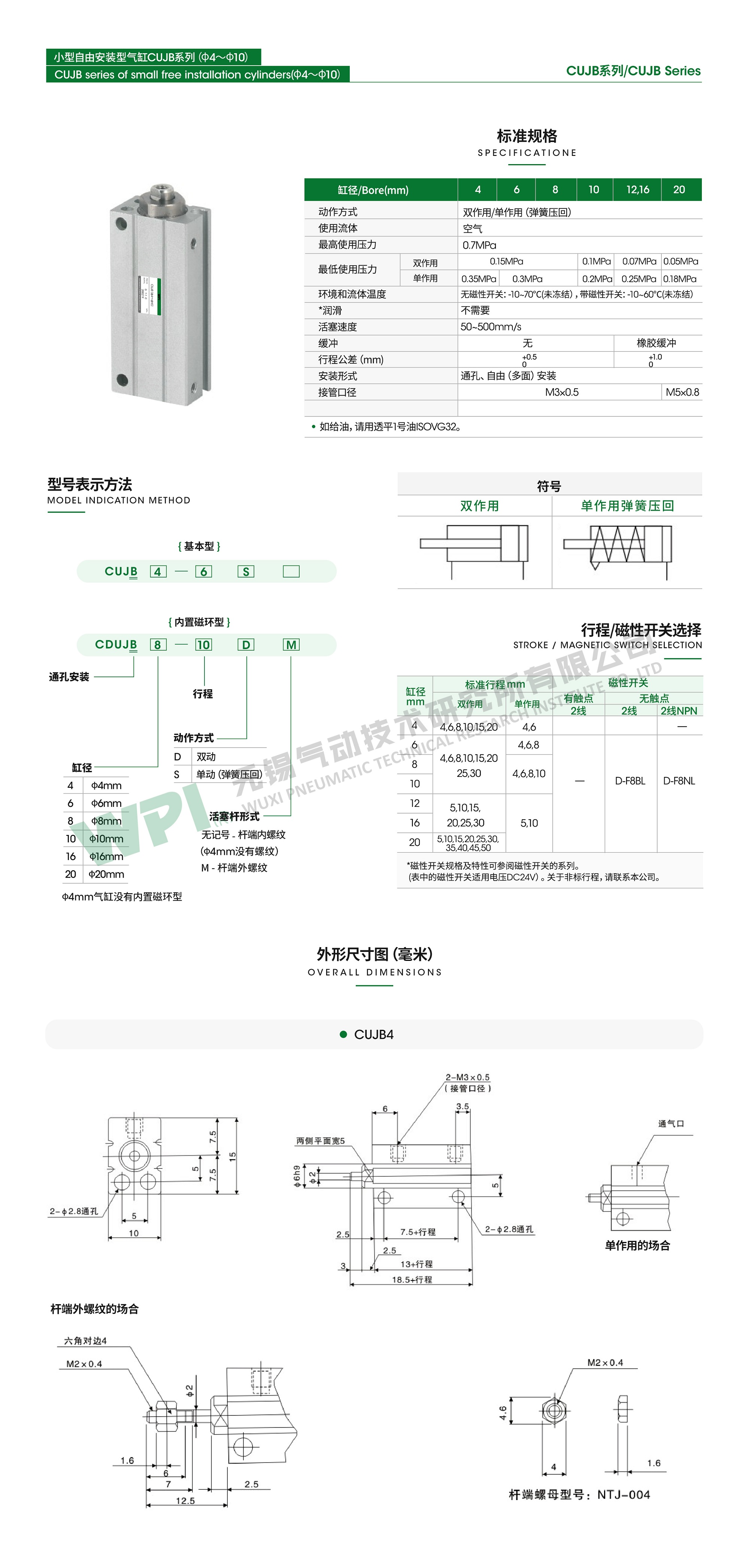 CUJB系列 自由安裝型氣缸