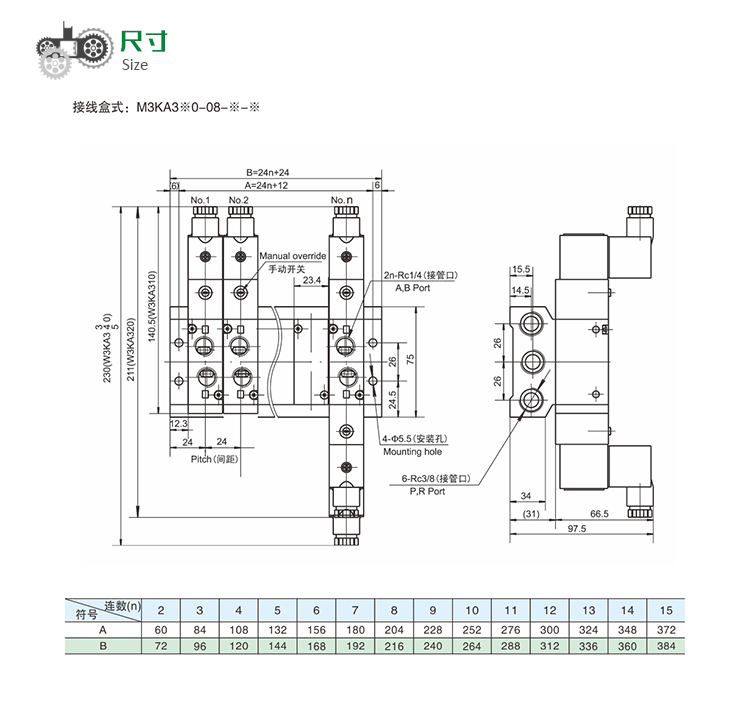 M3KA3系列 先導(dǎo)式5通匯流板型通電磁閥