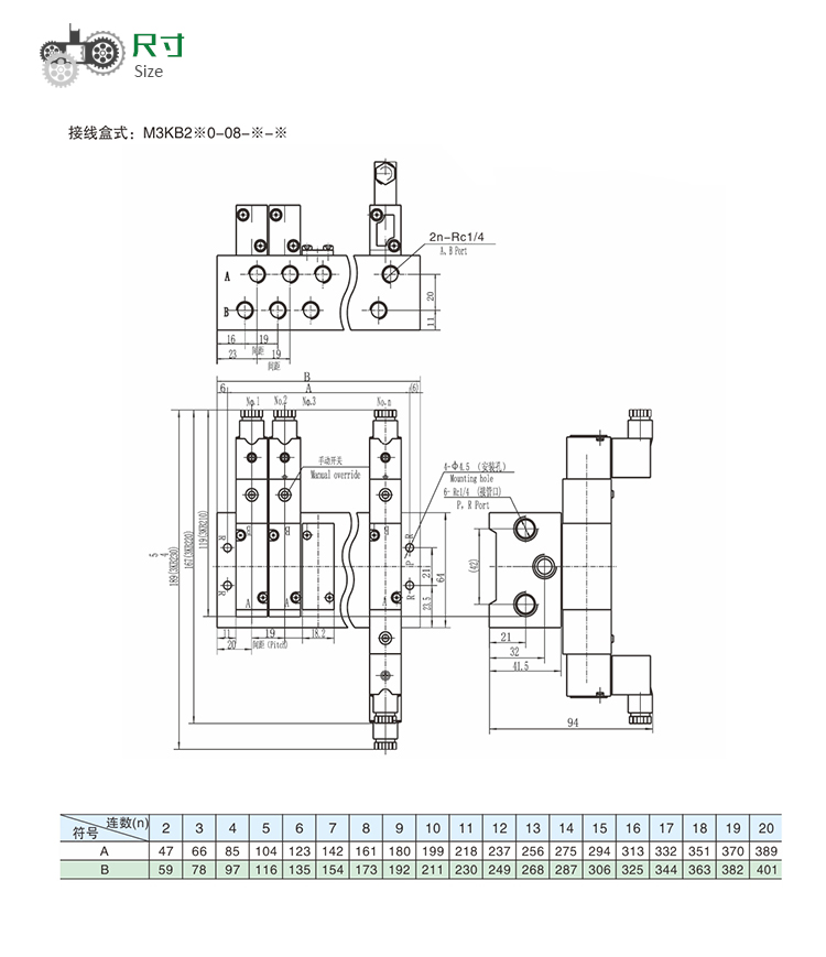 M3KB2系列 先導(dǎo)式5通匯流板型電磁閥